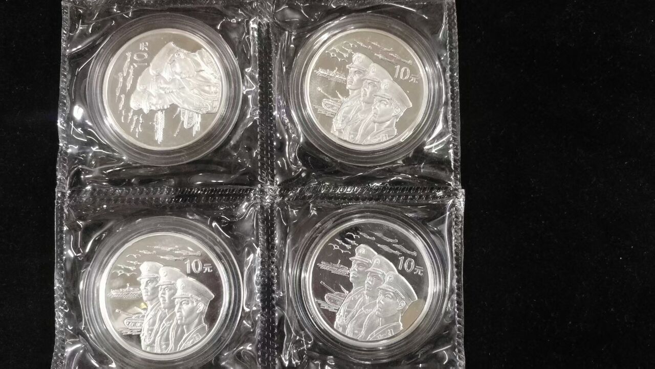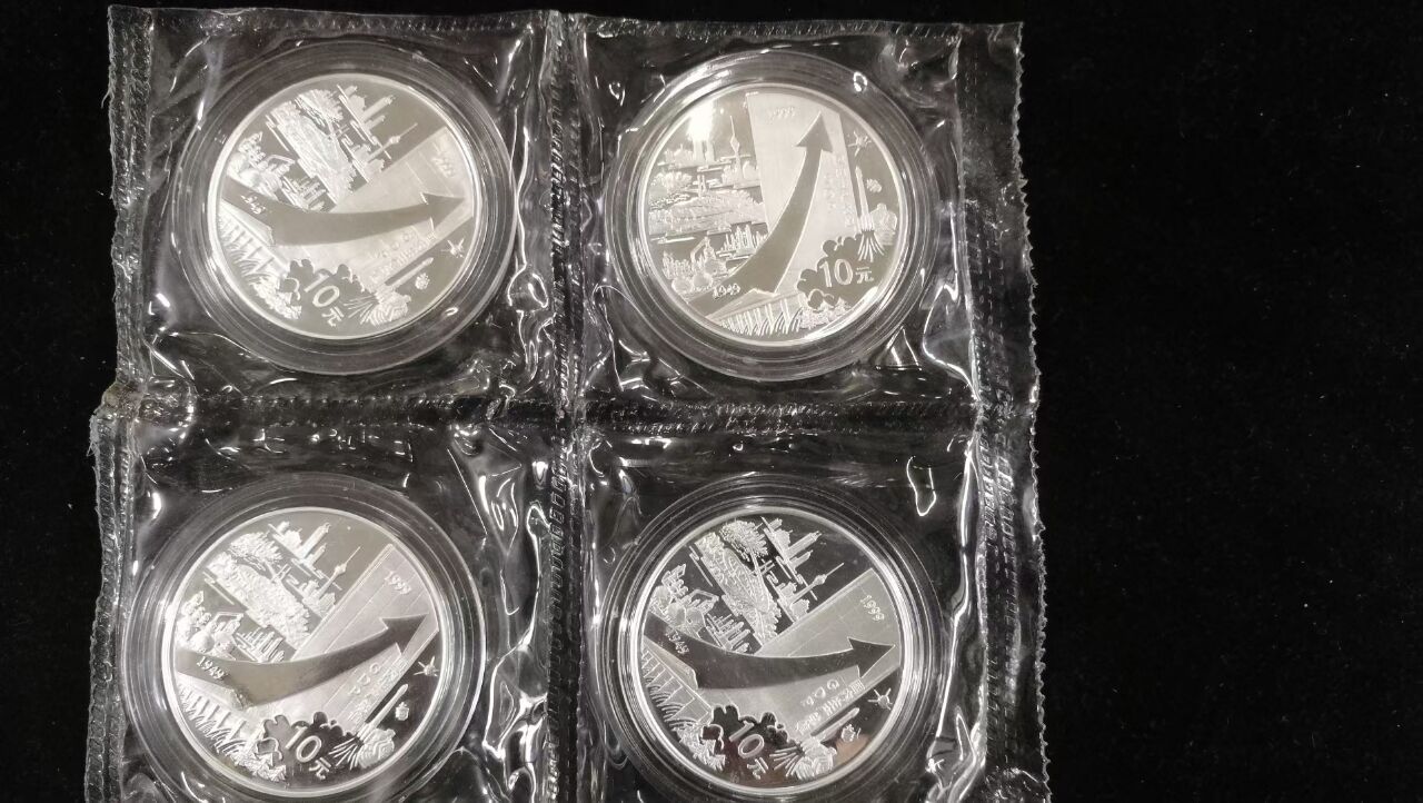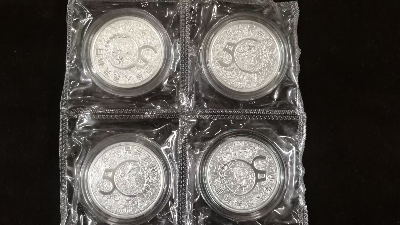 建国50周年1/2盎司金+3枚1盎司银币共4套