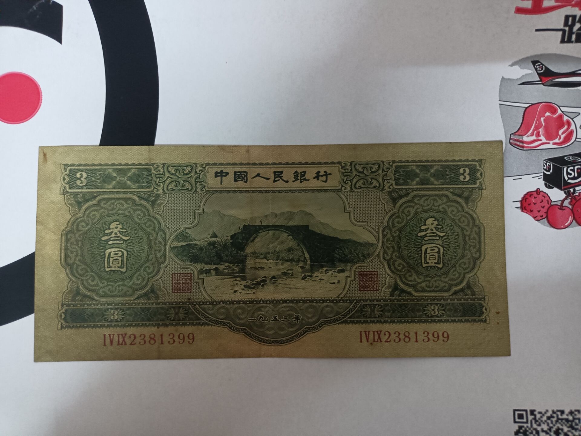 原票好品三元,无47无裂口
