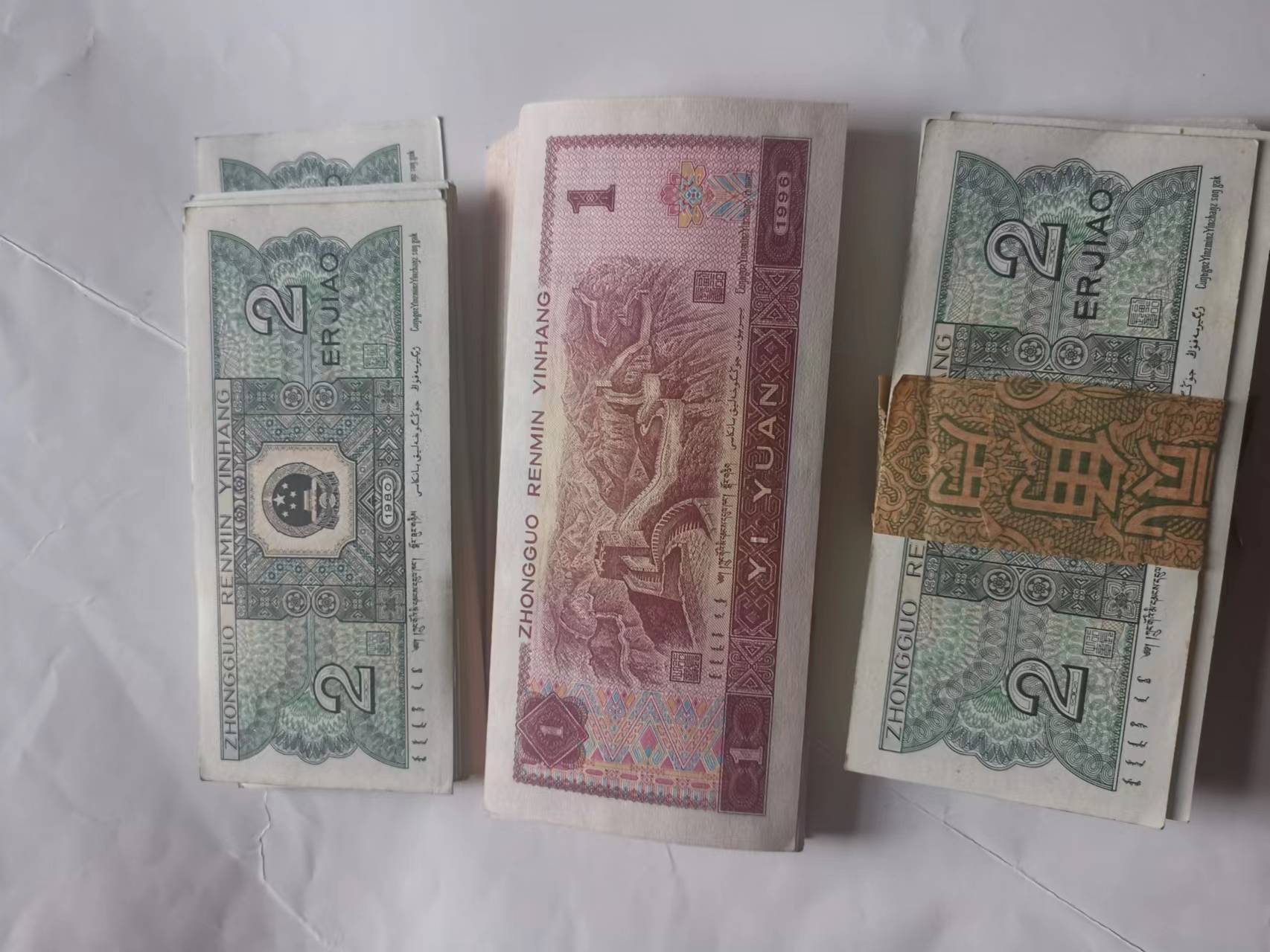 百连,原票,尾601的贰角第二张角翘,961的第一张右边有裂,201这刀最后一张粘和腰带粘在一起,一起350一刀不议价