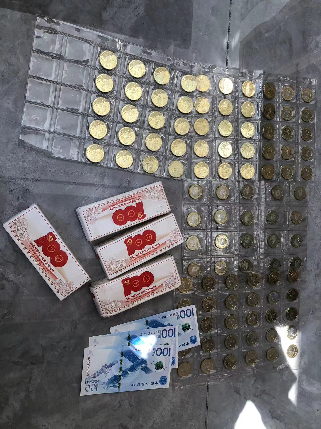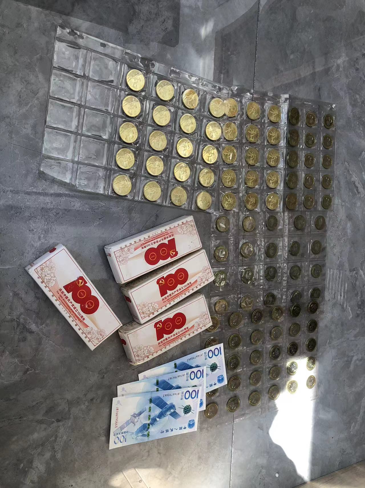 一些纪念币,建军,二鸡,和字书法,航天钞,