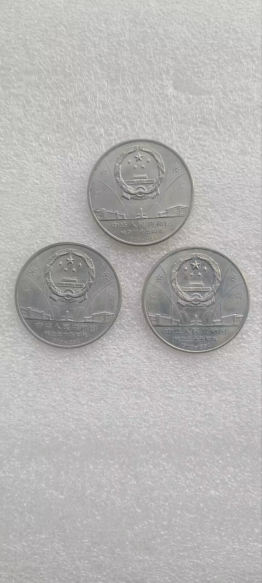 建国三十五周年带底光,品相如图,只是大典十点钟和四点钟有小磕碰,438包邮!