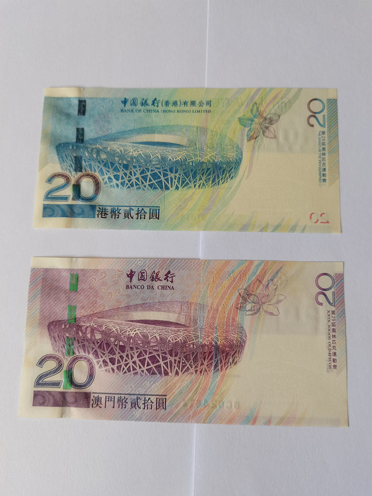 一对港澳奥运钞金属线周围有不平。