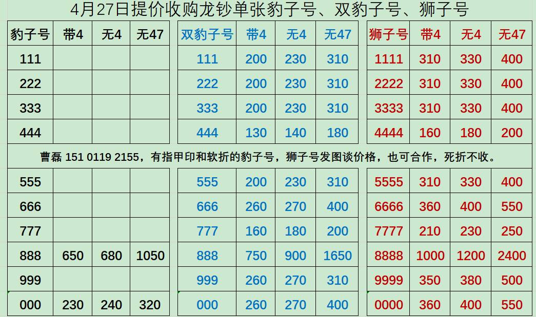 收单张龙钞豹子号、狮子号