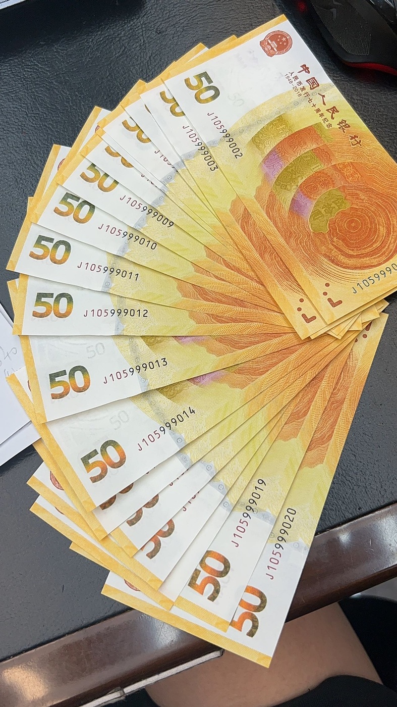 航天钞 100.4一张 建国钞 200一张。70钞有一个标十 58一张通走