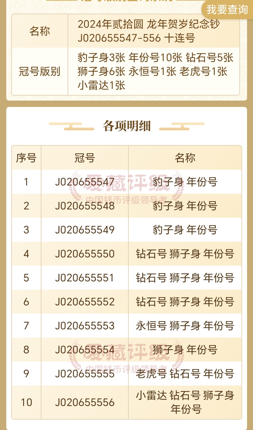 小龙钞0265组合老虎55555十连