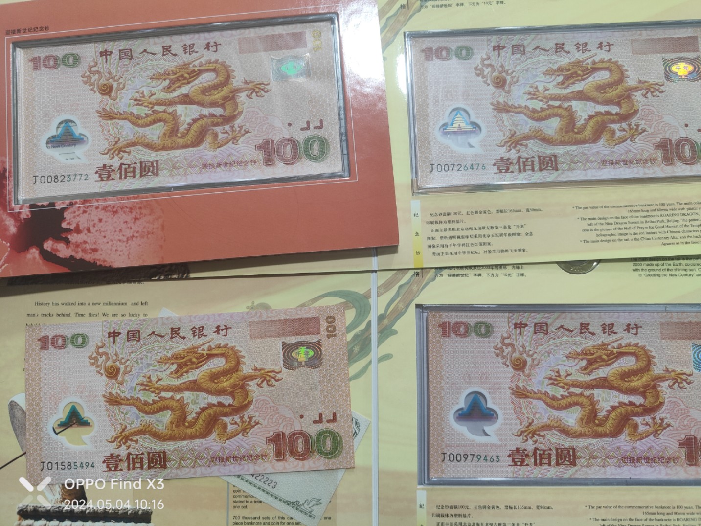 大龙钞4张,建国钞4张