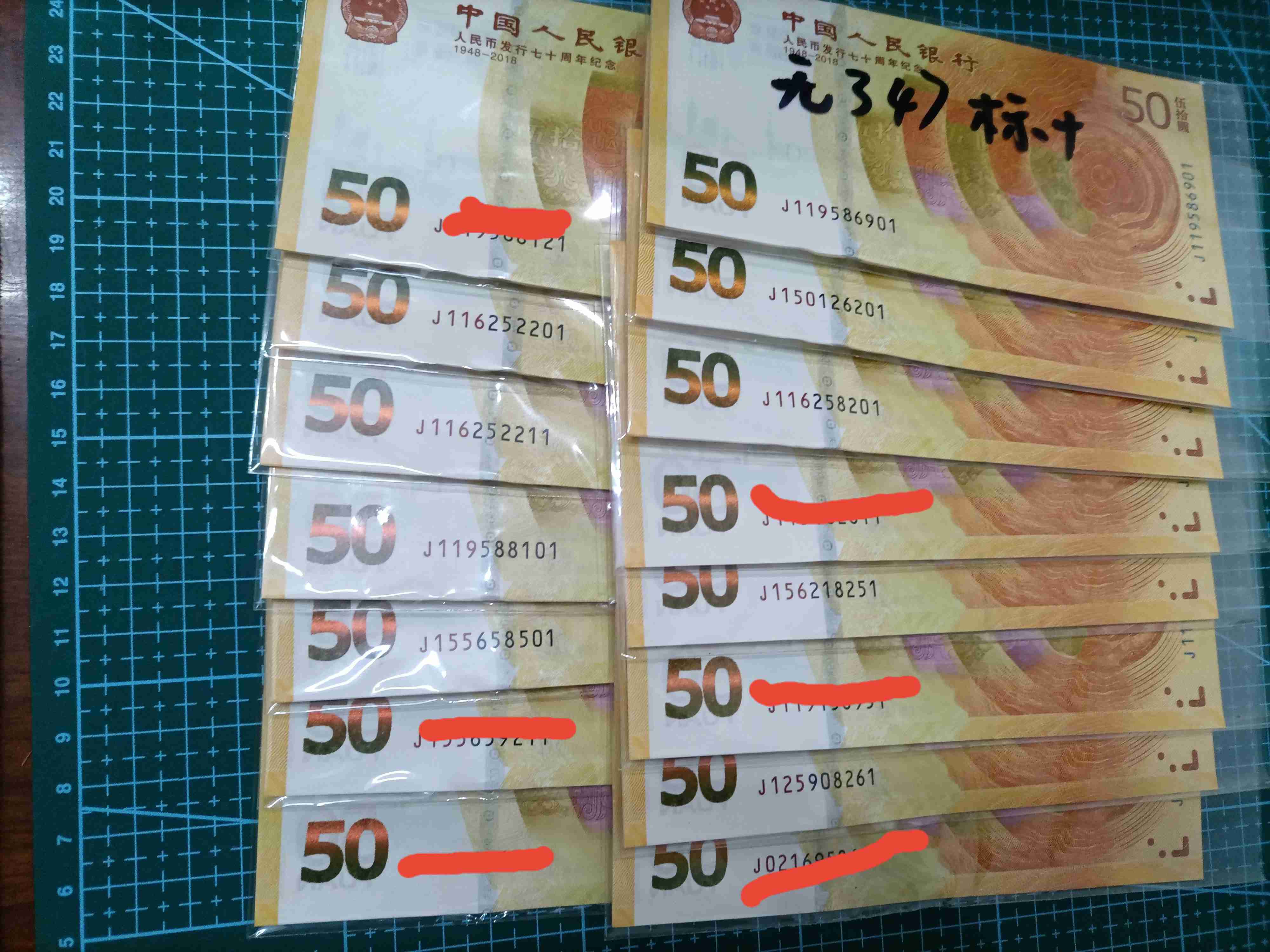 70钞无347标十9组,无47标十12组,带47标十5组,倒置号3张