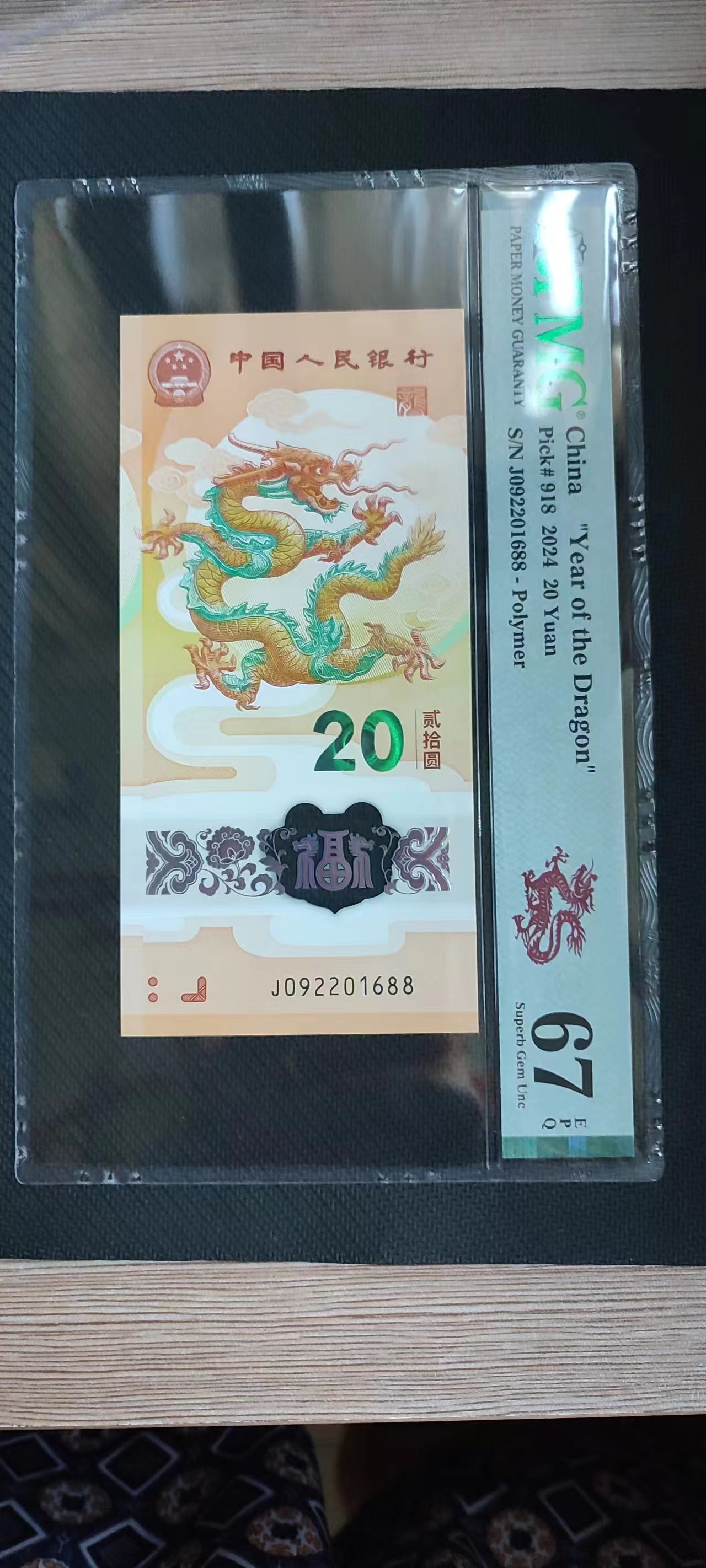 出售张小龙钞朦胧号尾1688PMG67分。如图,售1800包顺丰