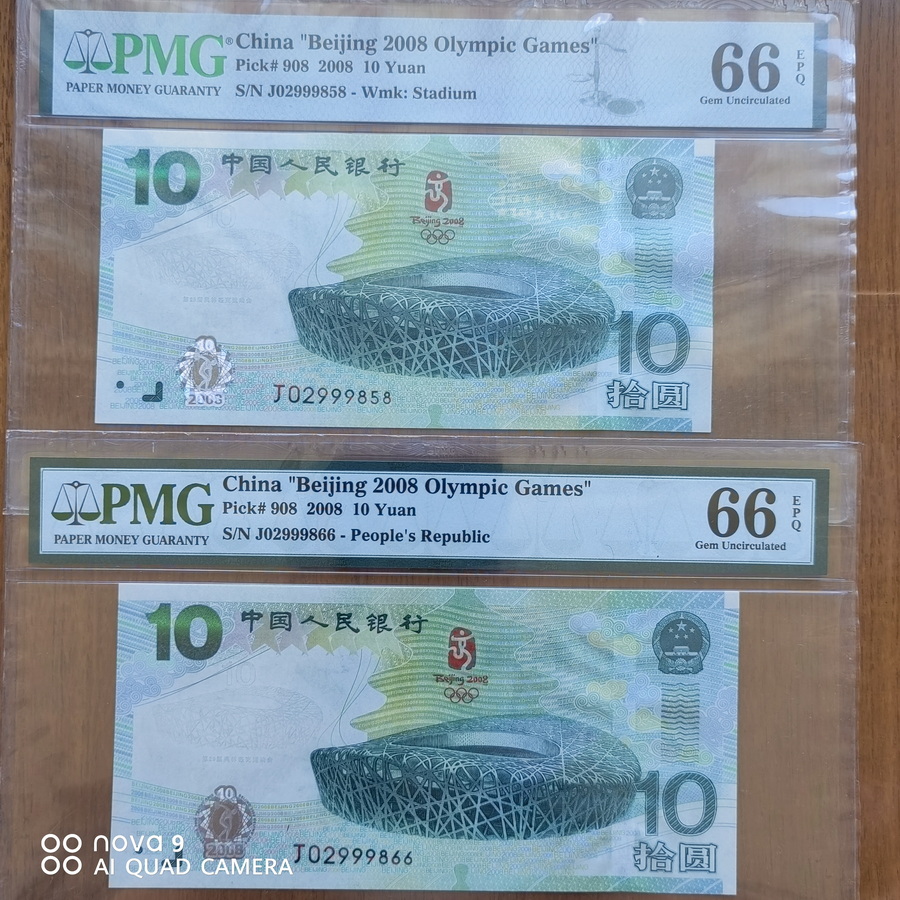 售:PMG66 奥运绿钞无3457尾8 尾66两张