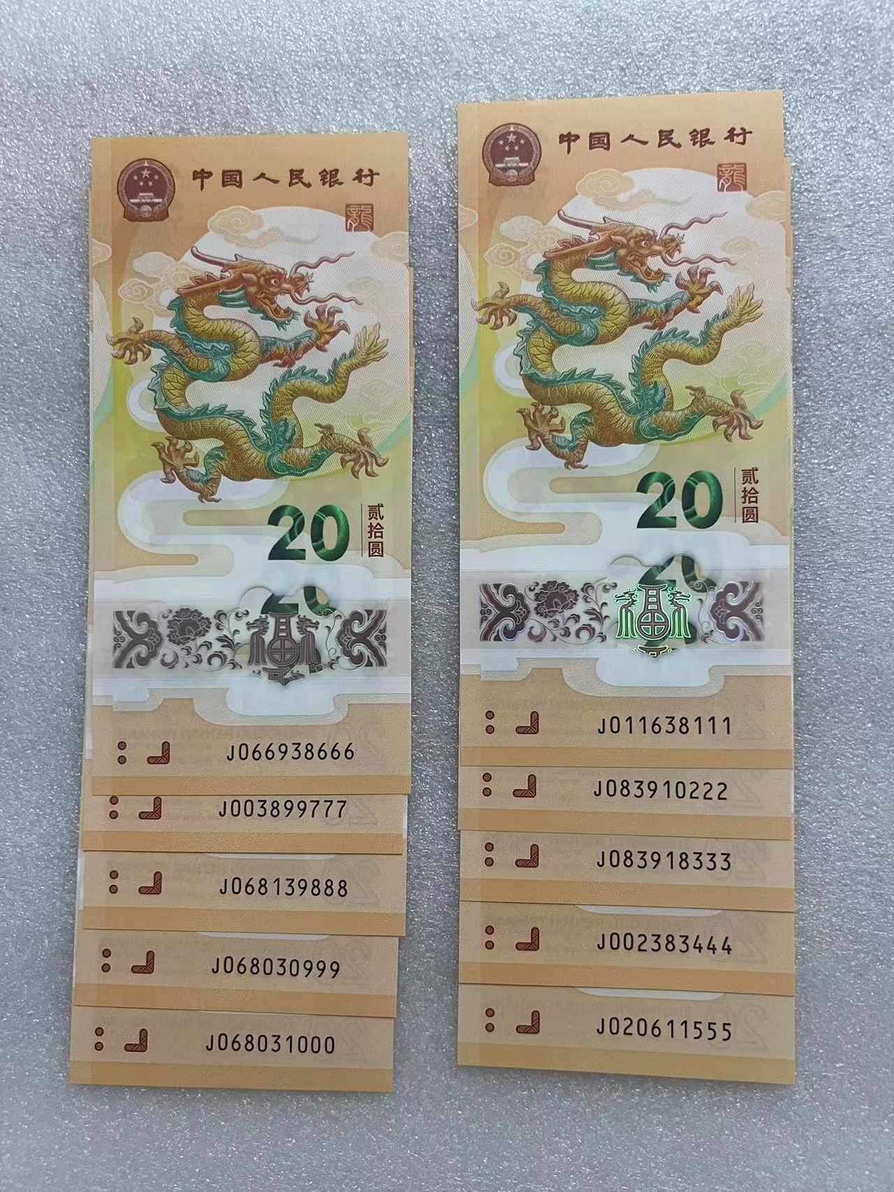 → 小龙钞无47豹子号000~111~999全套10张