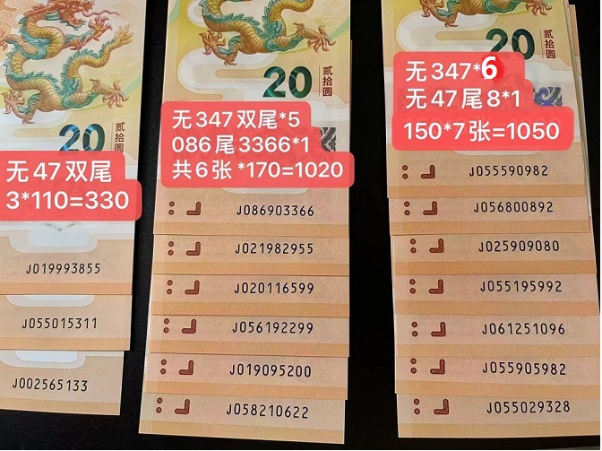 无347双尾 6张*170=1020元(含2011头 086头尾3366)