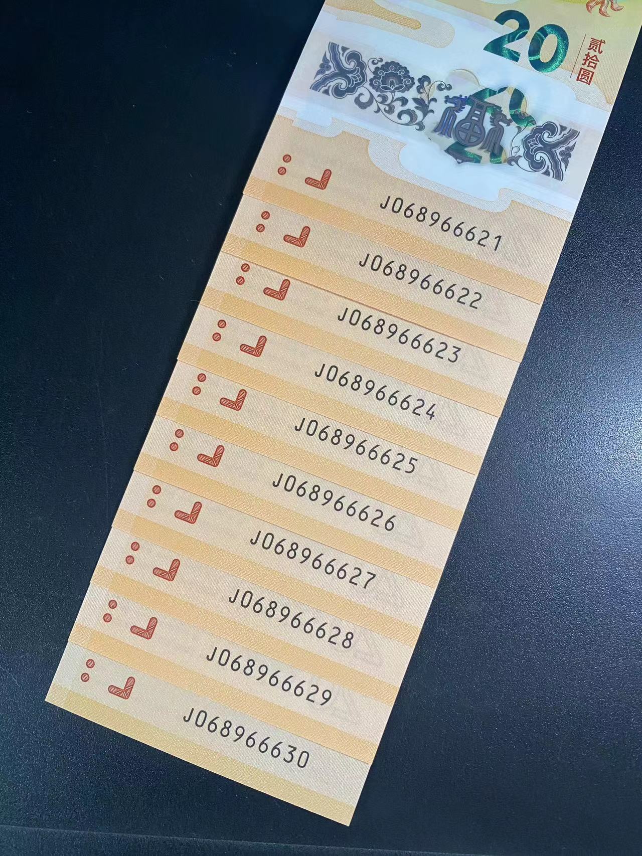 以上小龙钞标十,单独一个0,张张0689正序圆圆头,含666豹子身,无折无指甲印,4600包顺丰