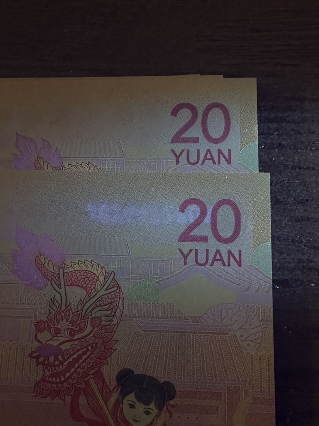 → 出小龙钞稀有【荧光飞龙在天】带4标十
