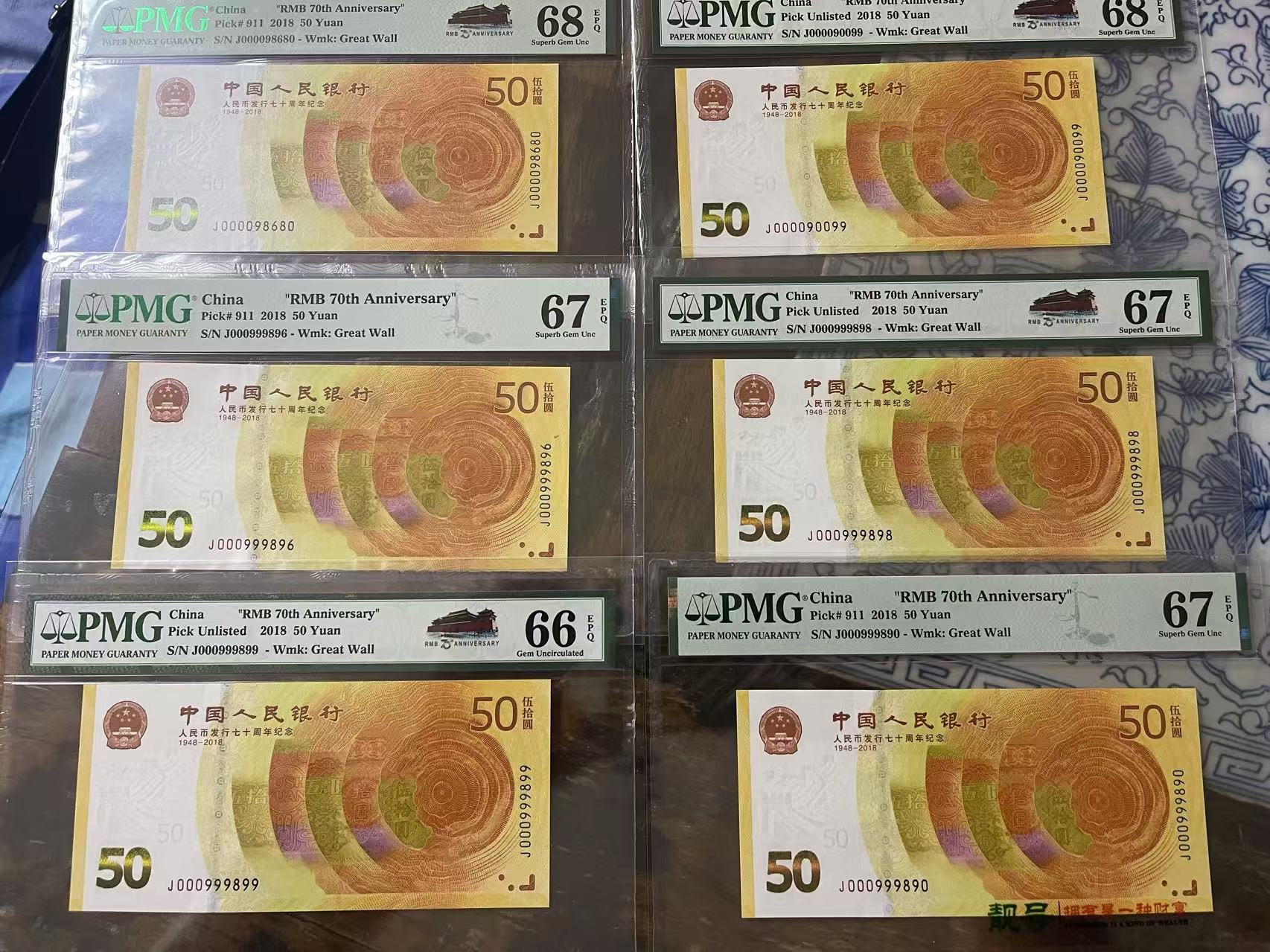 000098680 司令钞 圆圆号 PMG 68分 3800元000090099 人二 司令钞圆圆号 PMG68分 9800元