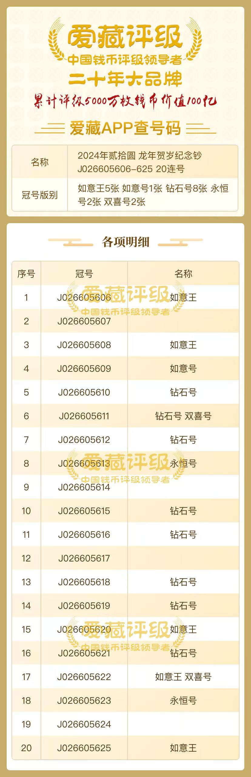 J026605606--625 20连,如意王5张, 一起出3500元包顺丰,微信:4170188