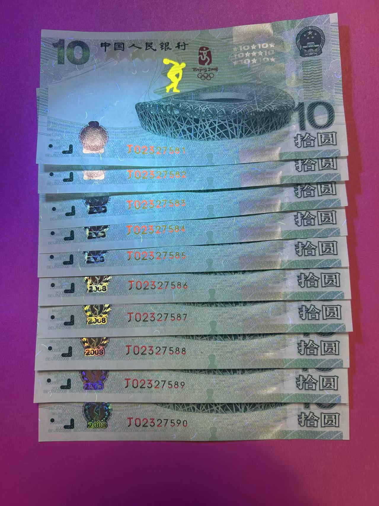 奥运钞绝,品无四尾88一组