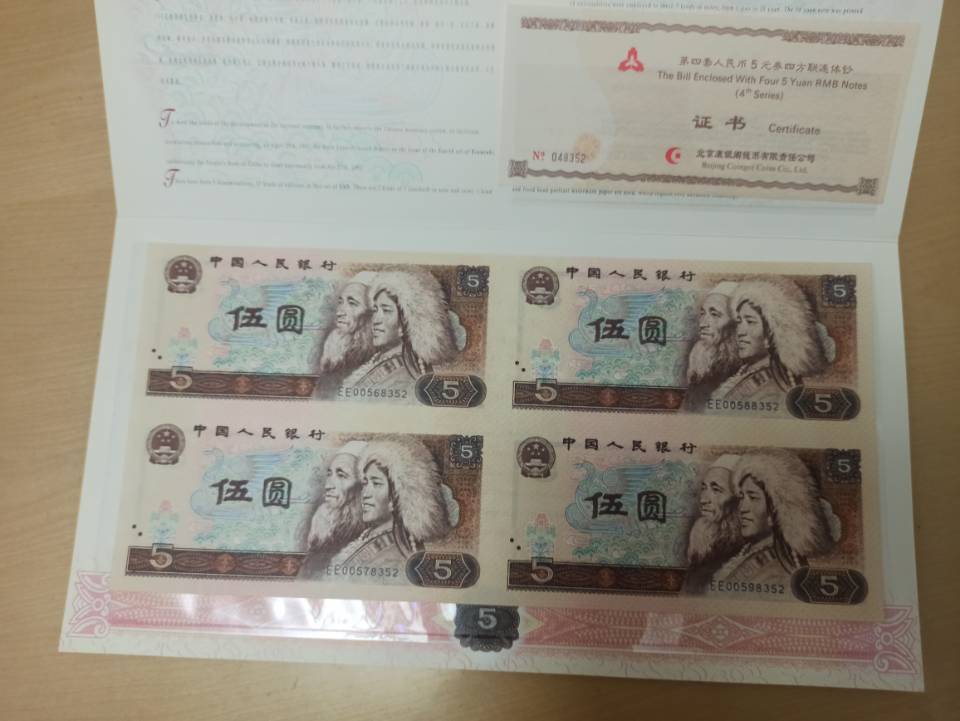 五元四连体一本(无47),品如图,背面边有轻微黄(可能是币本身印刷问题),照不出来,920包邮,要的联系!