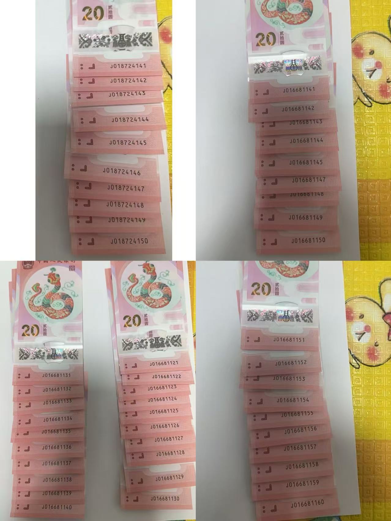 → 蛇钞,五组标十,其中3组无47.2组带4,一张倒置号。2968元,电联确认