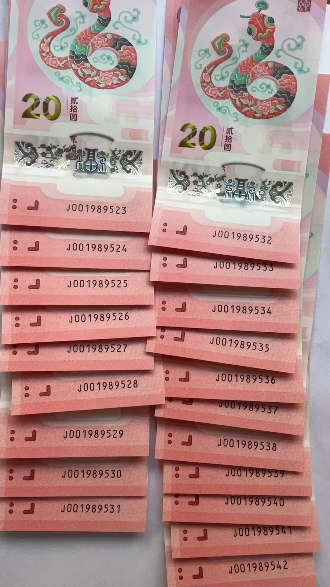 12888出蛇年号J001989523-542 连号。联系四川梁先生