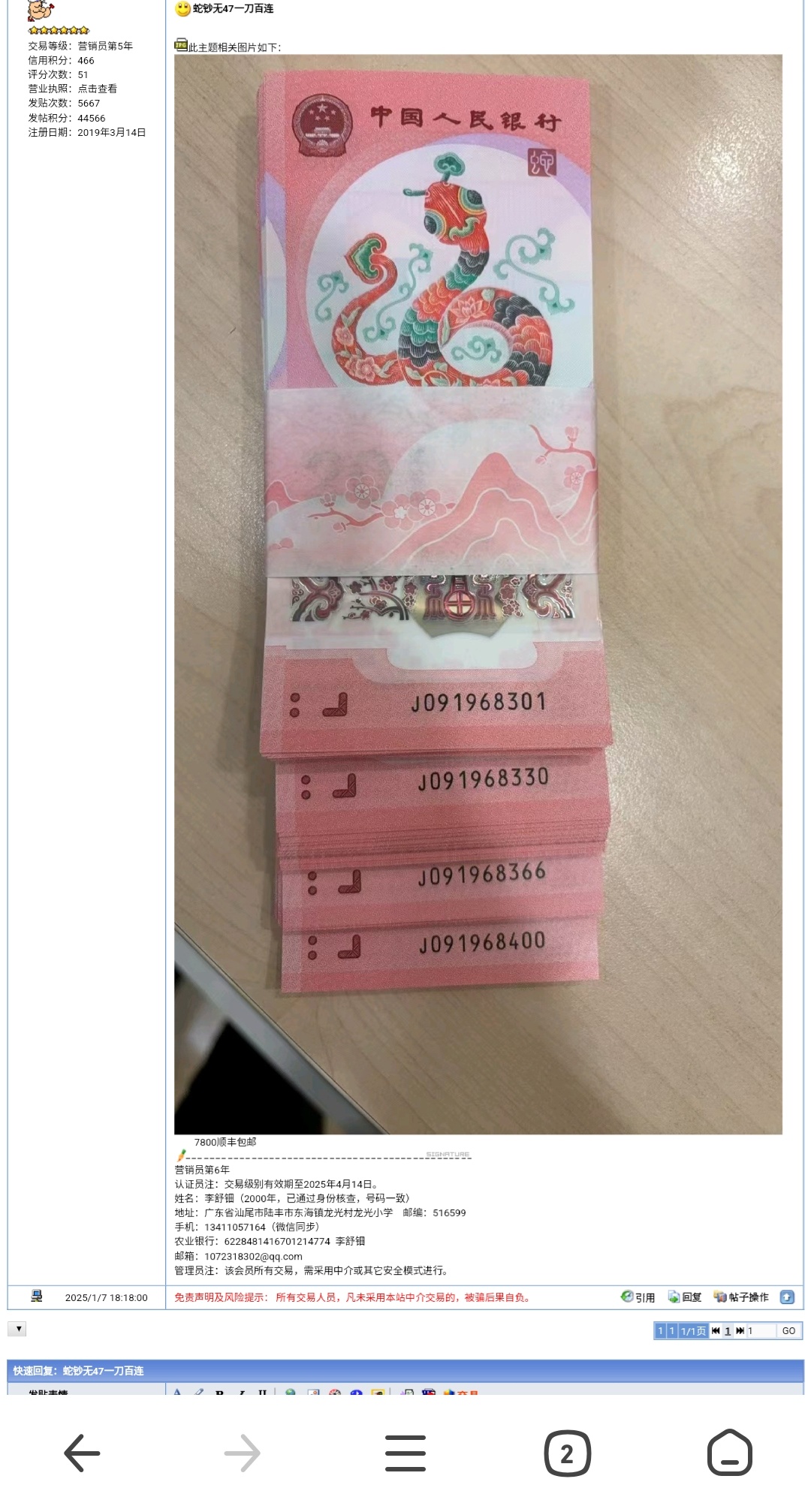 免责声明: 本站所有交易发帖内容,均是为了更好地服务和方便本站用户。本站不保证所有信息、文本、图形、评分、链接及其它项目的绝对准确性和完整性。凡未采用本站中介交易的,被骗后果自负。