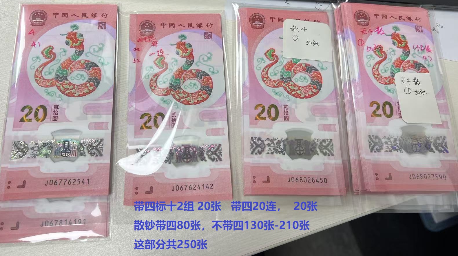 散钞带四80张,不带四130张-210张