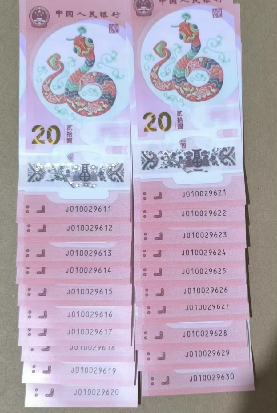 → 出一组蛇钞朦胧号20连,010029611-30
