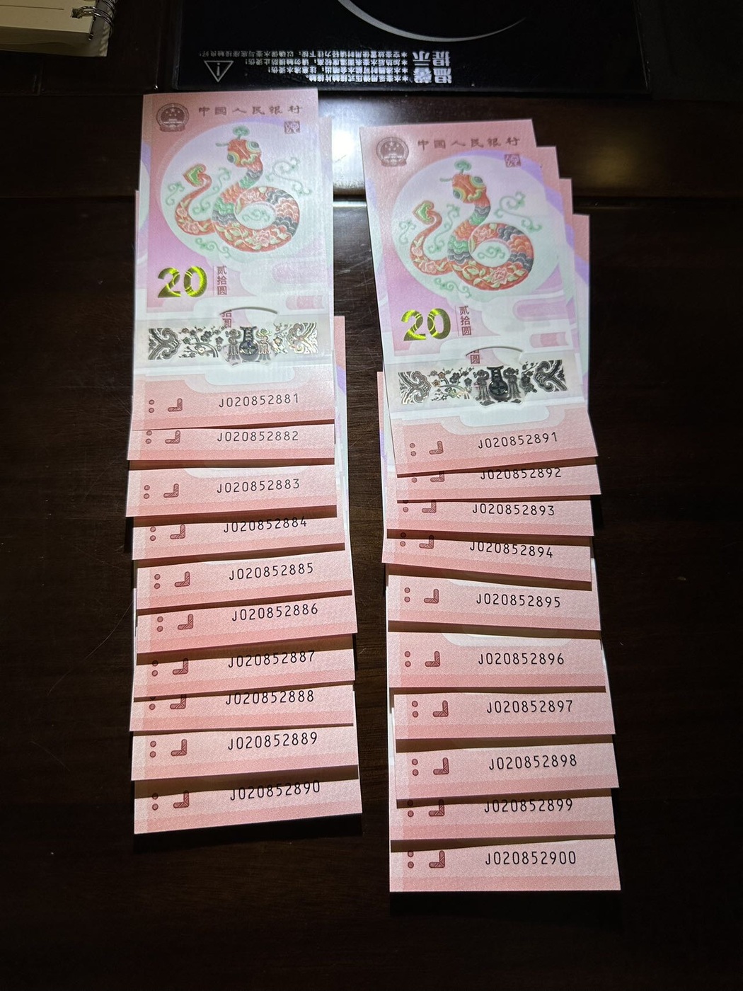 5000元出0258组合20连(含一张尾888),J020852881-J020852900