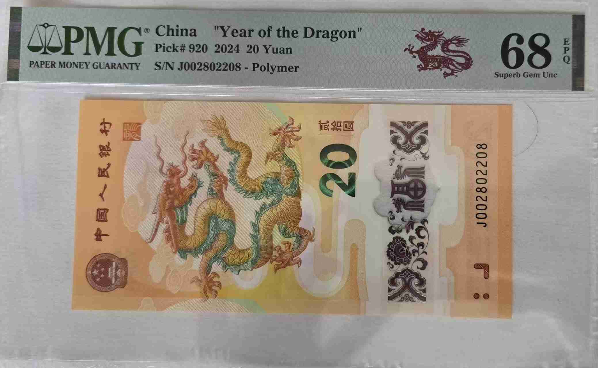 出龙钞028尾8 PMG68分