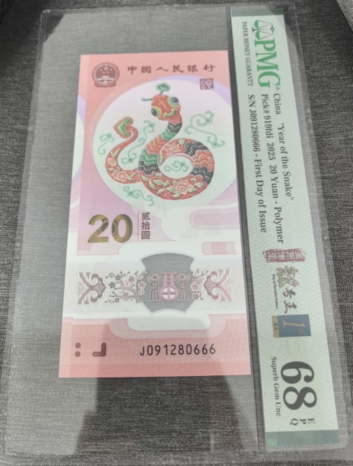 → 出一张蛇钞PMG68分首日666