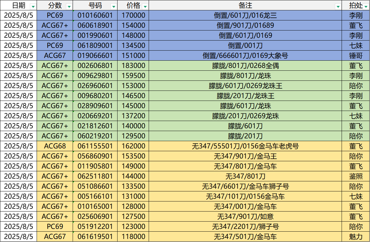 号码如下: