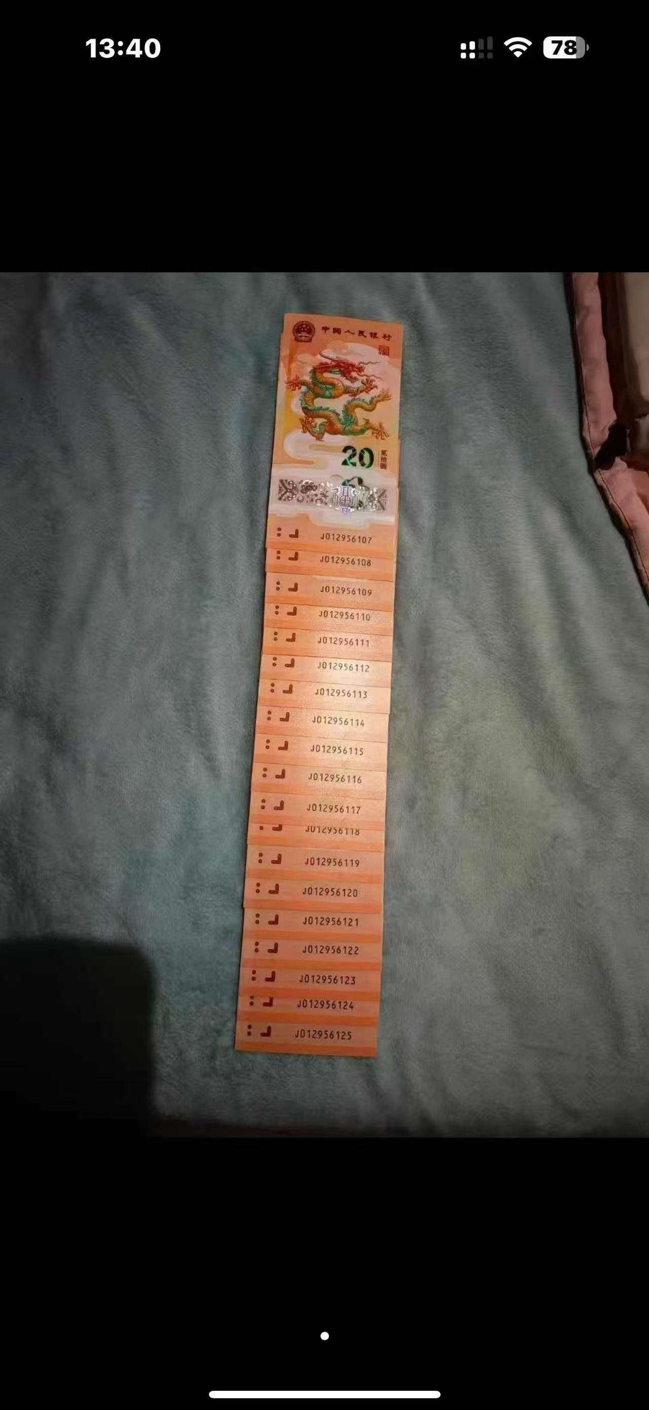 龙钞无347豹子号,20连,有指甲印,如图,一起走价格8000元,包顺丰