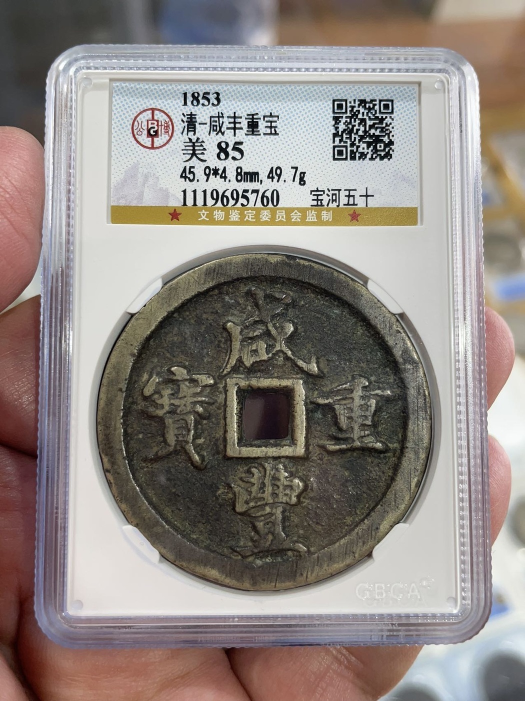 传世熟美原包浆咸丰宝河当五十 价 3150元