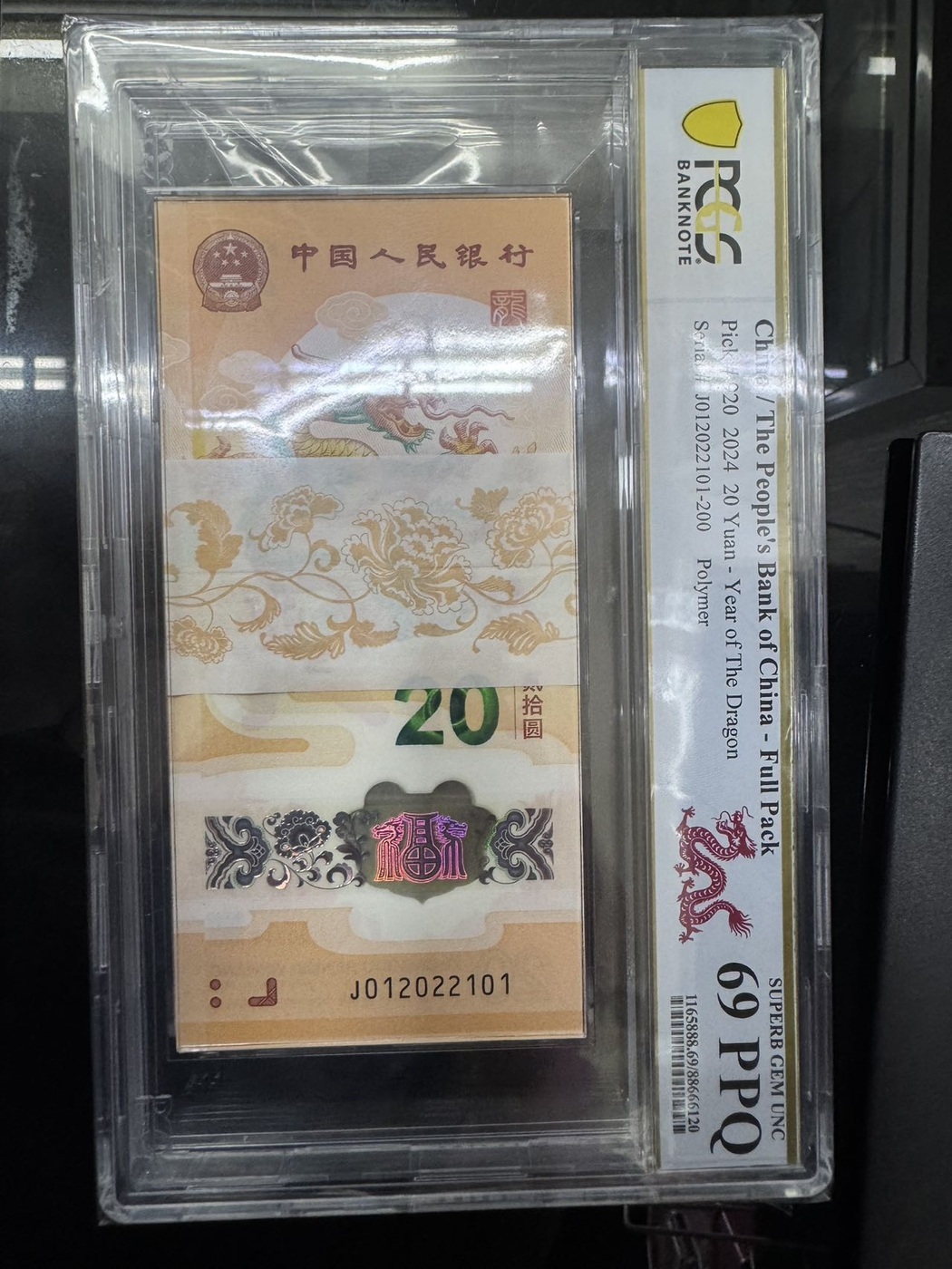评级龙钞整刀百联pcgs69 J012022101 全小号 价格 220000元