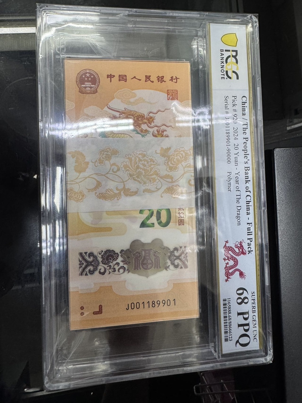 评级龙钞整刀百联pcgs68 J001189901 四对半 价格 248000元