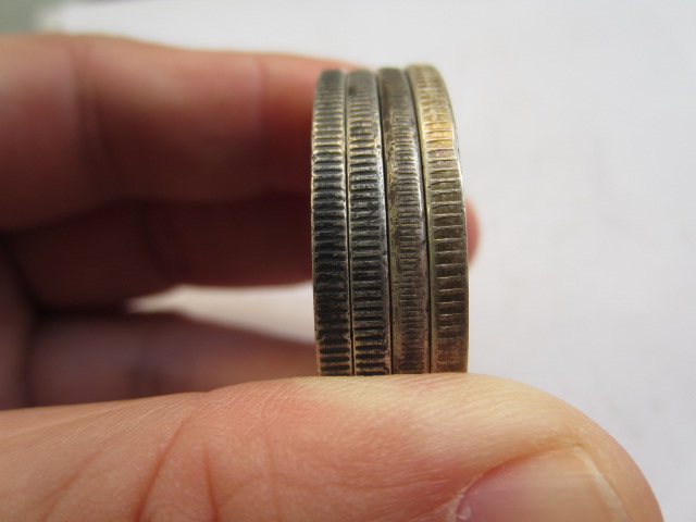 老包浆无戳记无毛病大头站人三只,十年是细齿版,背逆45度,图中已拍出。1000*3出售。小头是UNC的,有小戳记,550出售 .