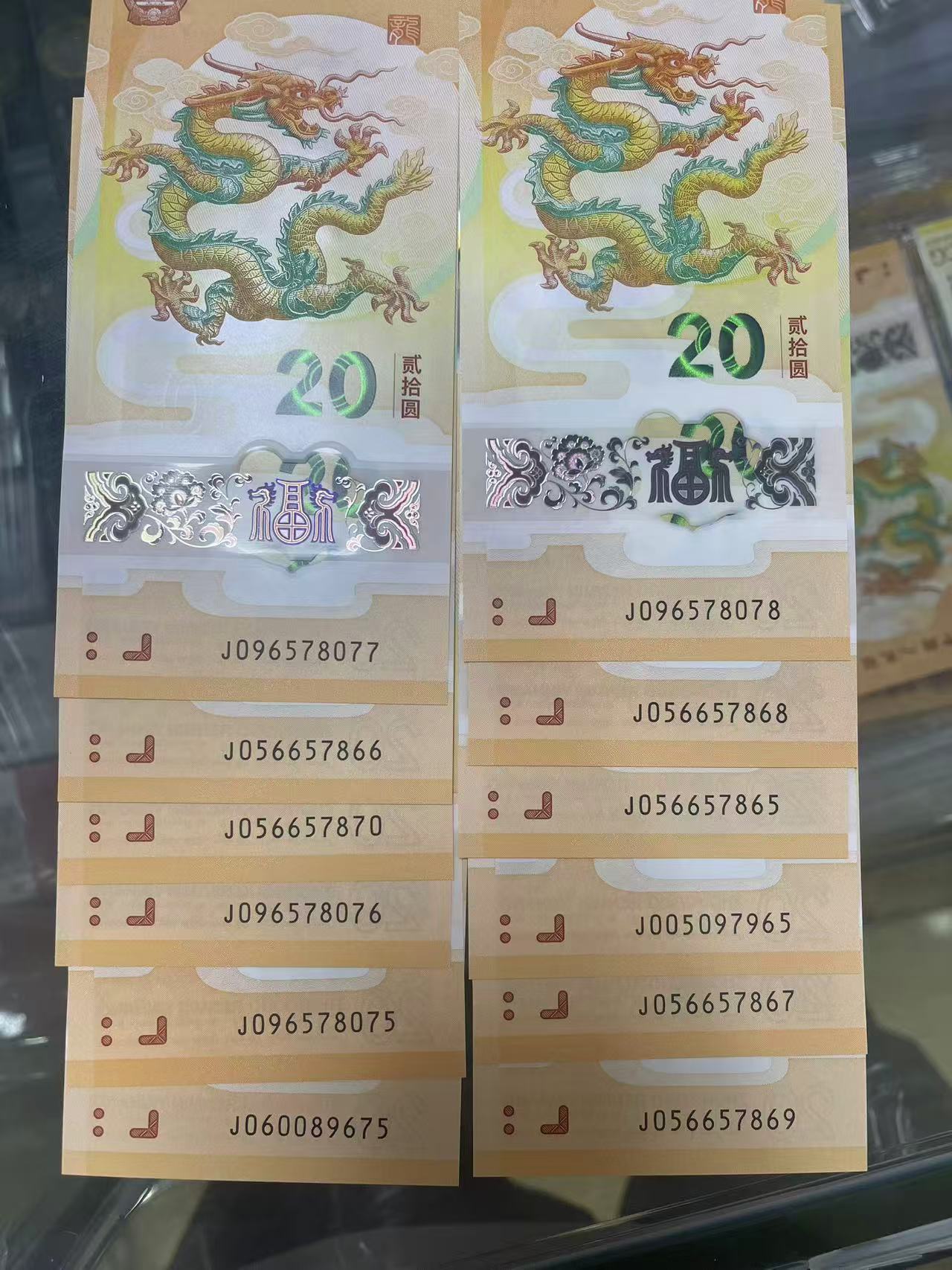 → 180一张售龙钞056789组合12张,含两张尾8,两张双尾