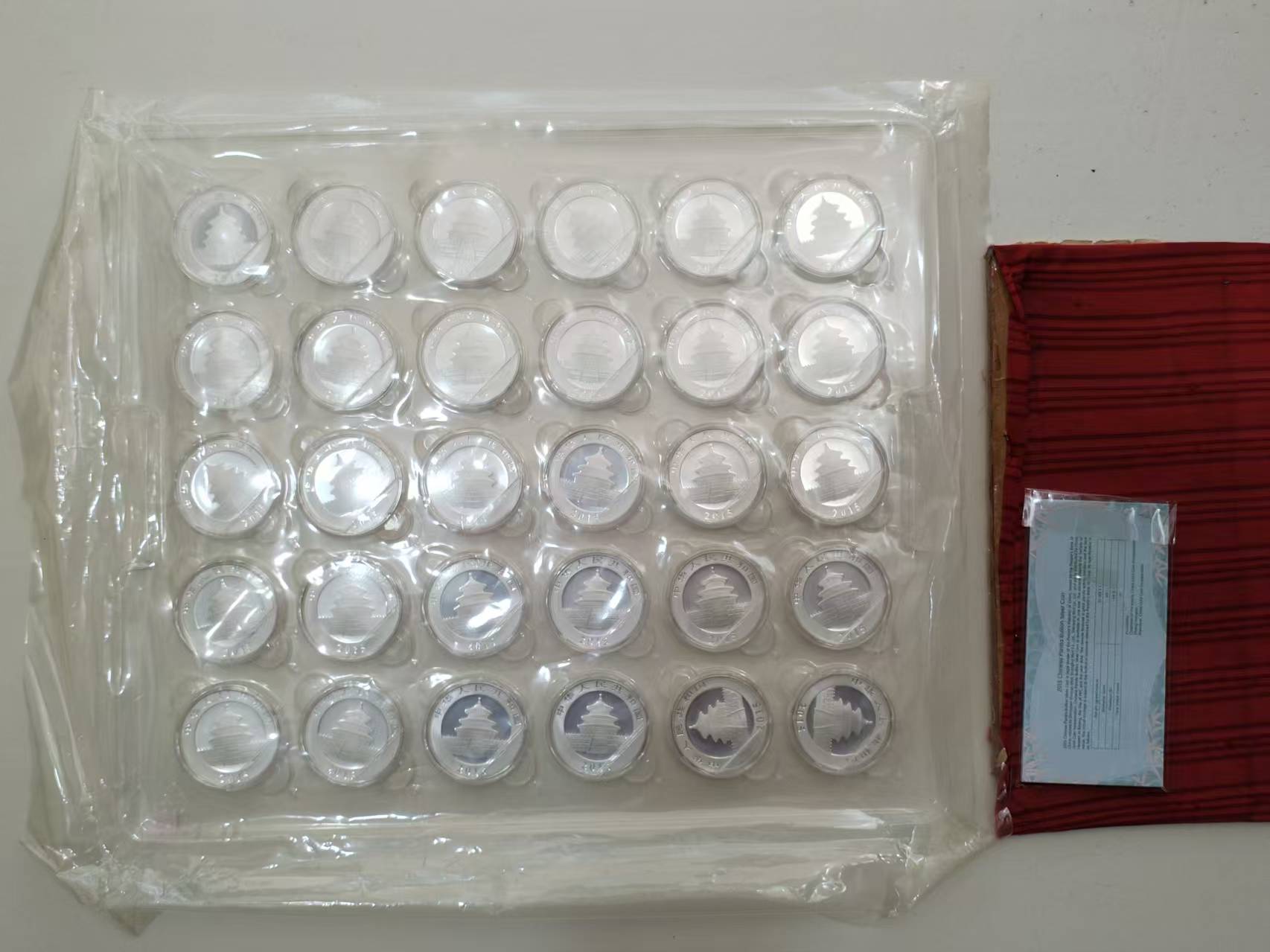 286元/个,2015年银猫,2版60枚,带说明书,熊猫这个面有点氧化,介意氧化慎买。