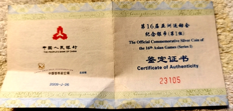 第16届亚运会第1组银币,NGC69,带证,480.
