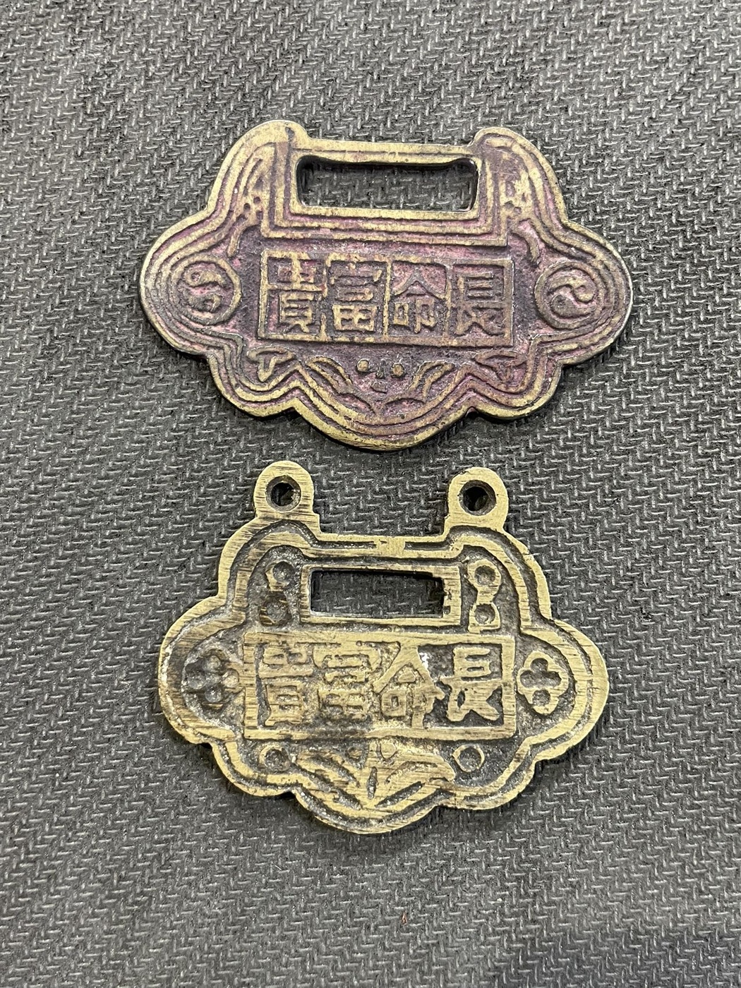 传世黄亮长命富贵锁花两个 品相完美 一起1580元包邮