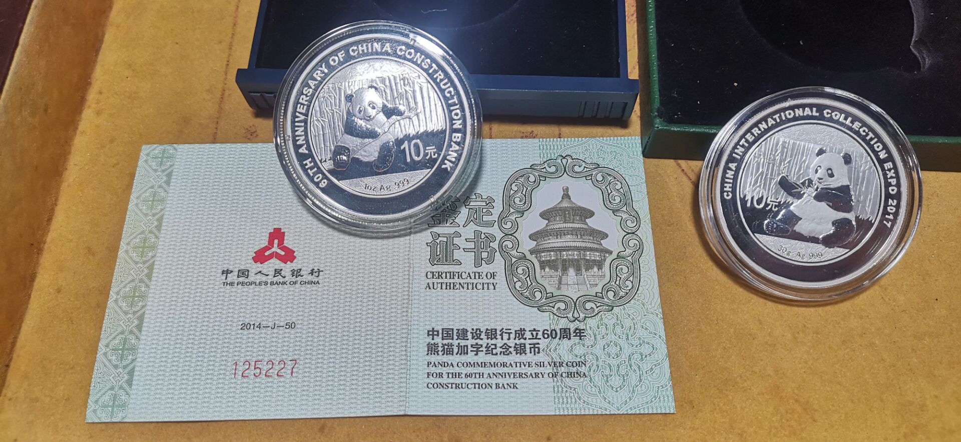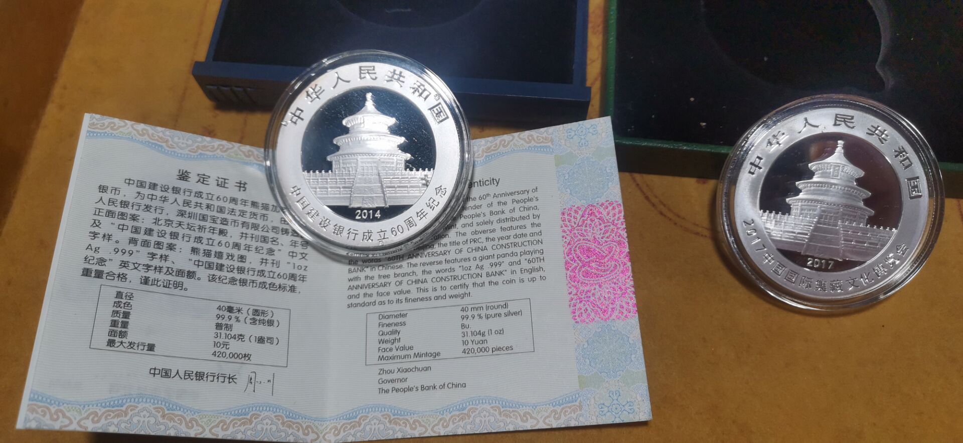 后2枚【2014年背一处轻微氧化 2017年】=600.00【注,2017年猫无证书】