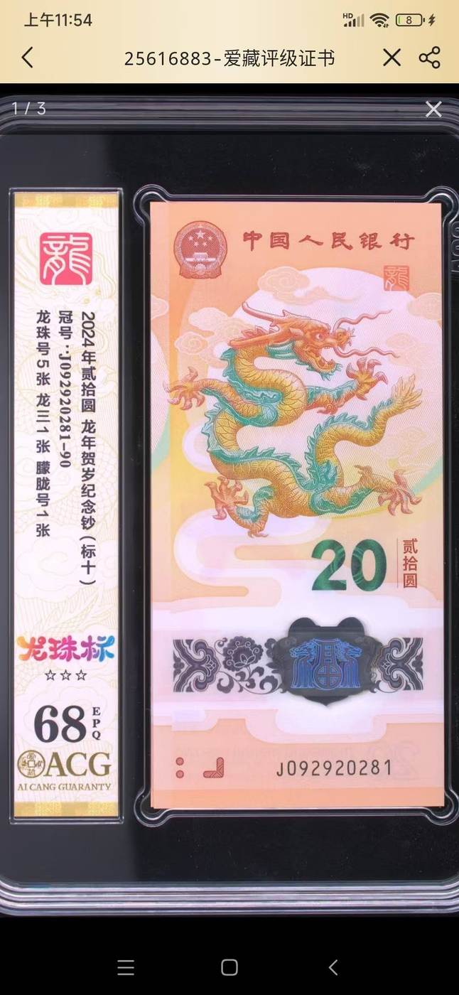 龙钞无347标十 龙钞龙珠标十 龙钞龙三标十 092920281-90 带029龙三 爱藏68分