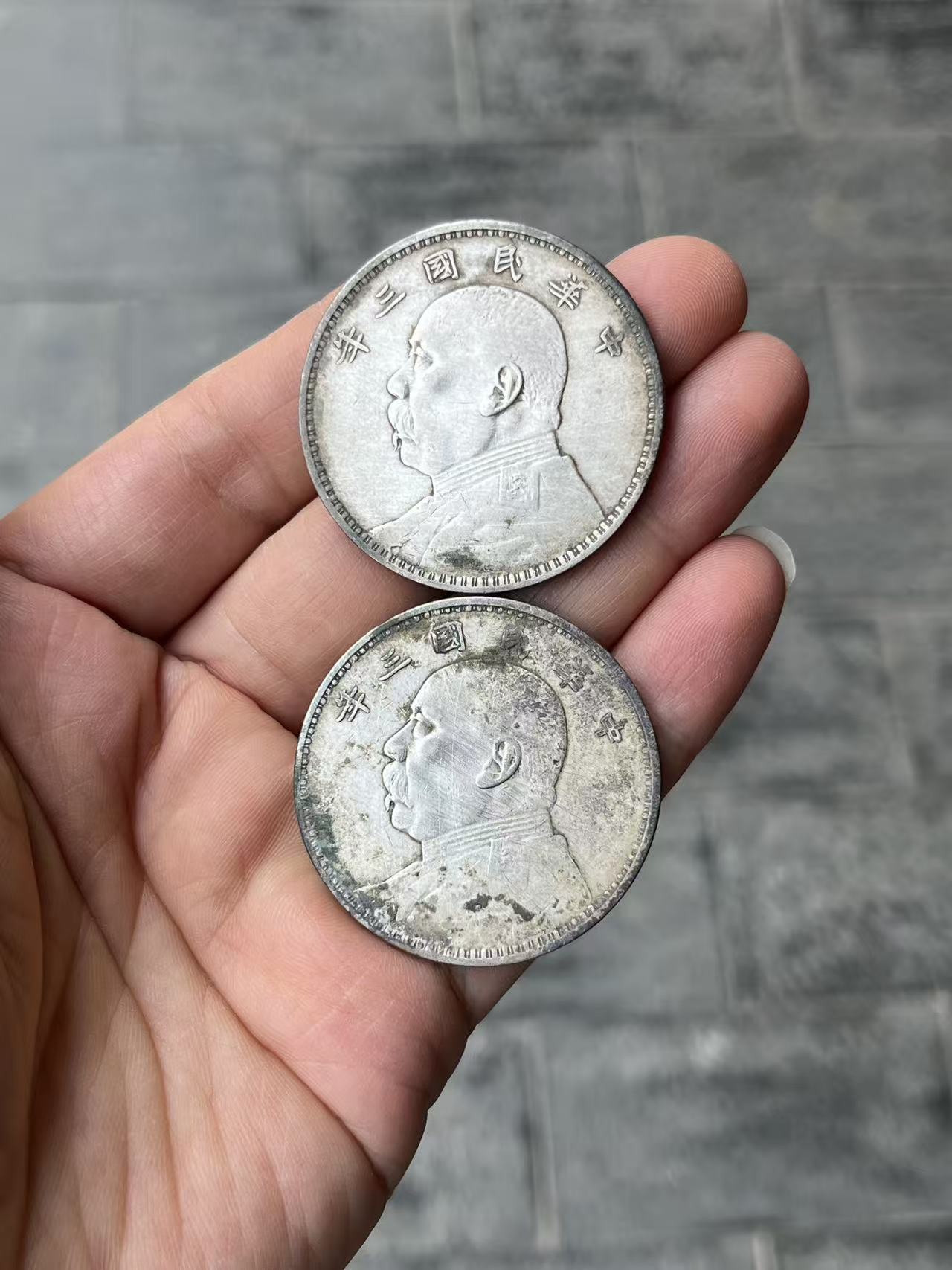 → 大头2枚,无戳,全边齿无腐蚀,表面有点擦痕,合格通货