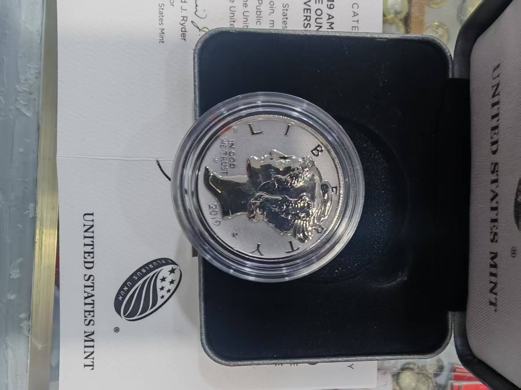 铭文包括自由我们信仰上帝2019 以及阿道夫.A.温曼独特的首字母缩写