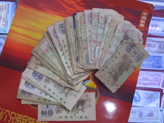 1角55张 ,每张2元。大桥71张,每张4元。纺织35张,每张8元、拖拉机28张,每张8元,大团结20。还有1.2.5分流通纸币,以前老商店的货,有兴趣联系
