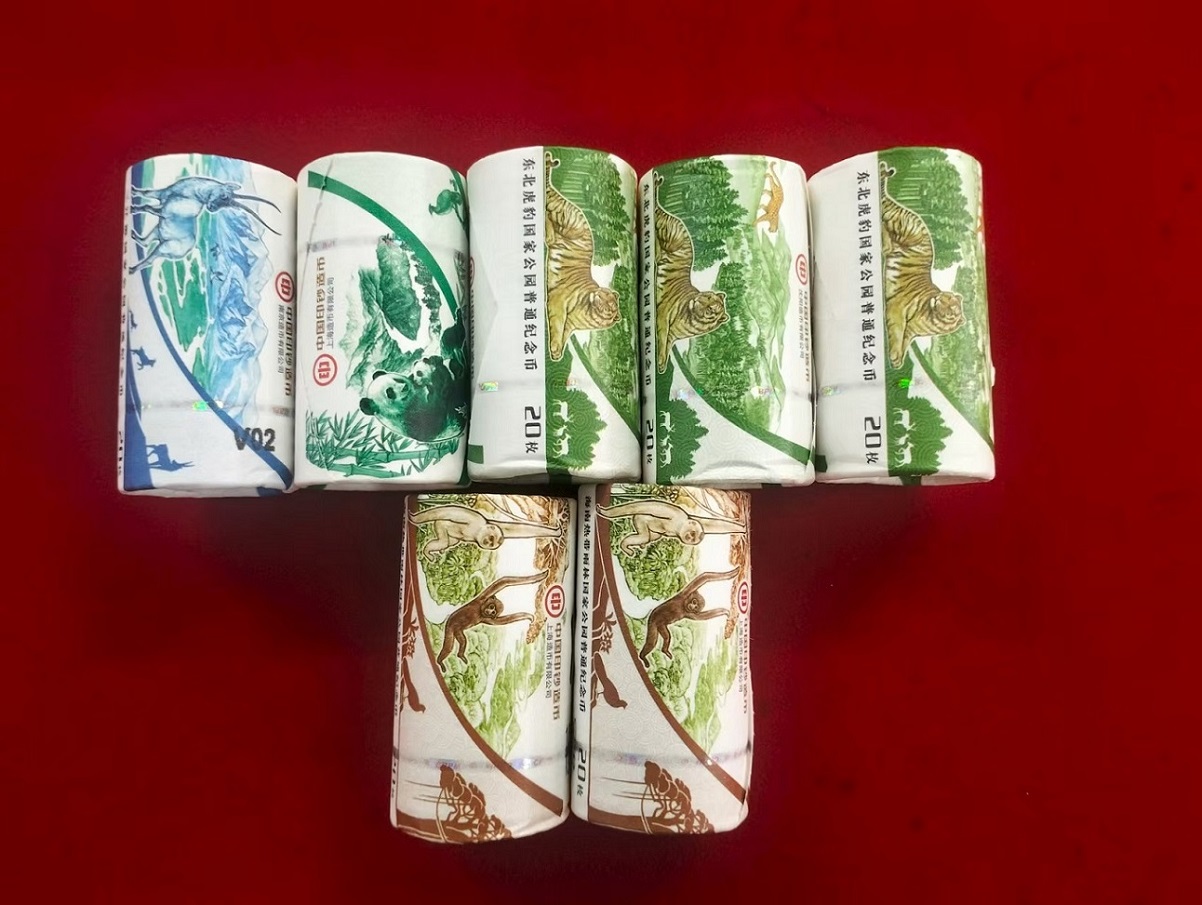 售 热带雨林 , 大熊猫,藏羚羊,东北虎豹纪念币,共七卷,好卷不破不裂