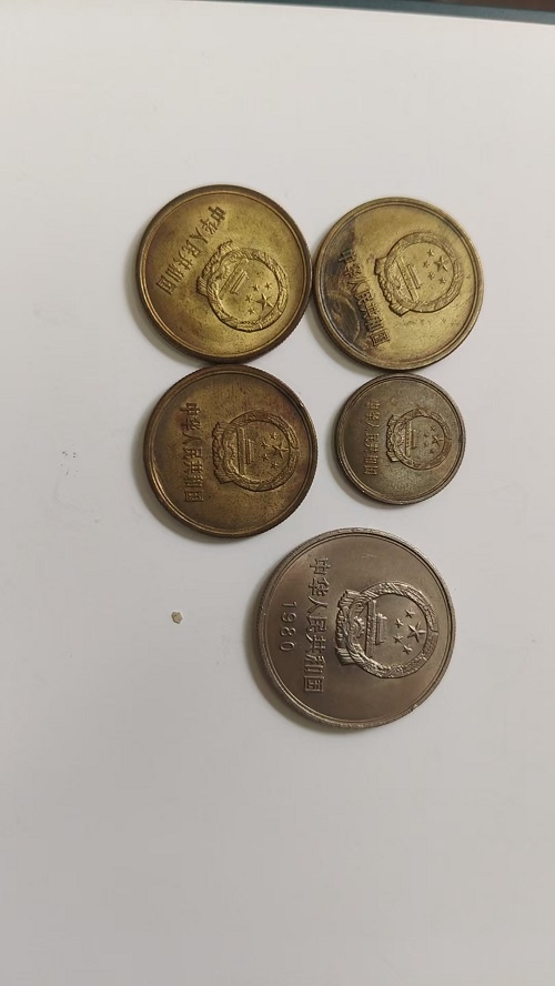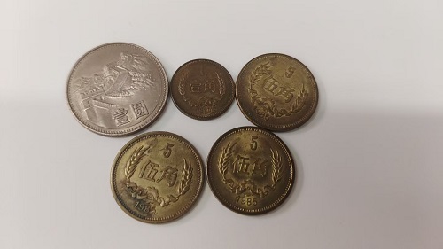 出85年5角三个,80年一角一个,长城币一元一个,合计5枚,一起出300元
