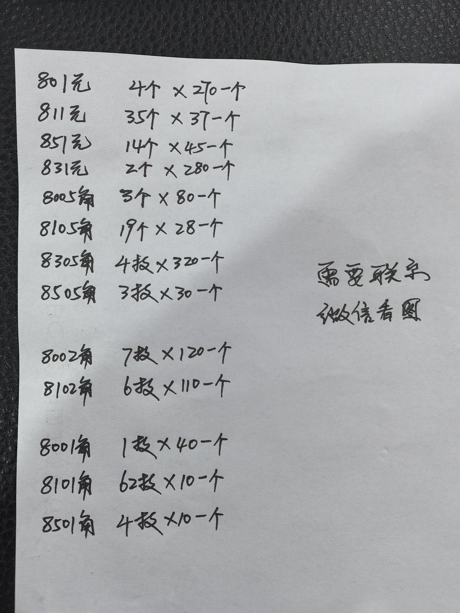 年份数量价格如图所示,需要联系,微信看图片