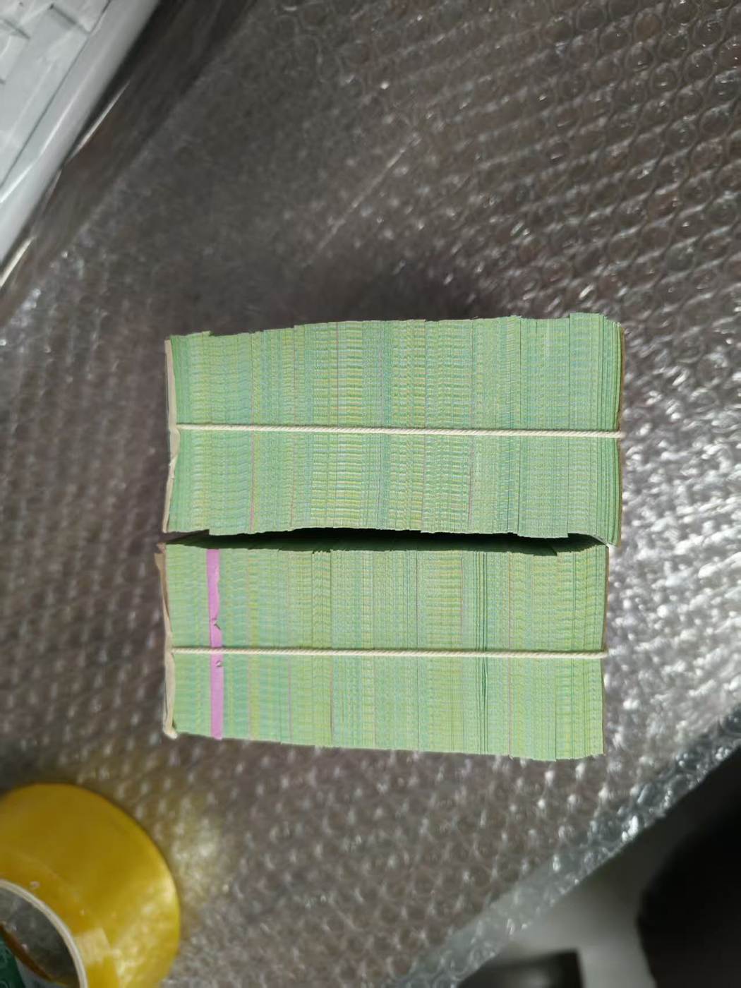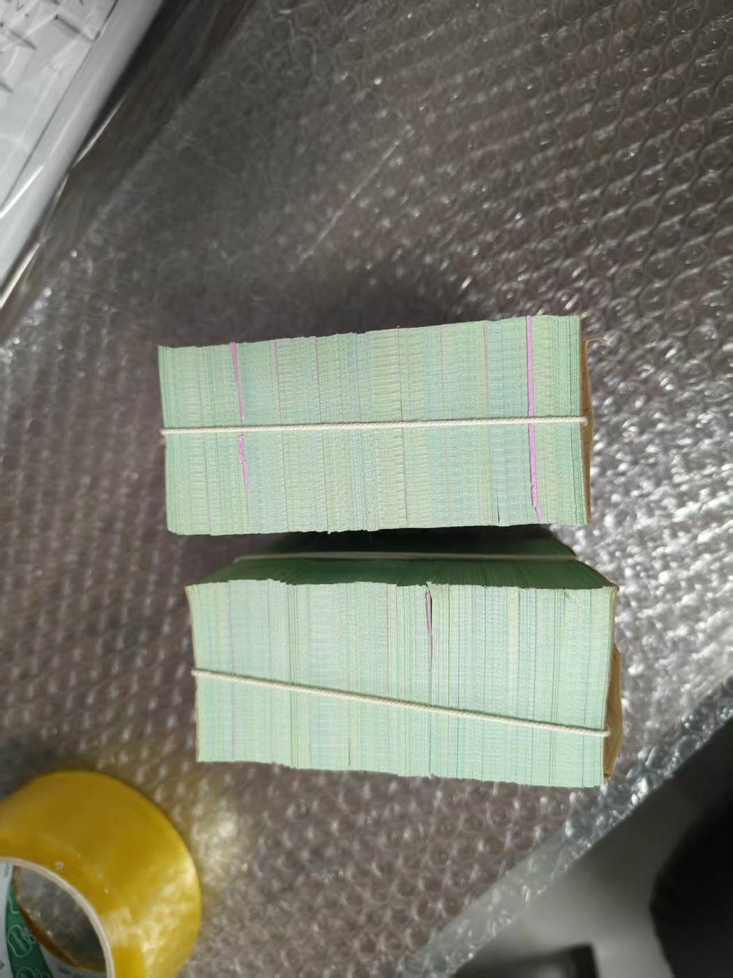 五分荧光小号无油无斑,其中有一捆紫光灯下有一两个原始黑印子肉眼看不到,一起走特惠6300一捆,谢绝议价