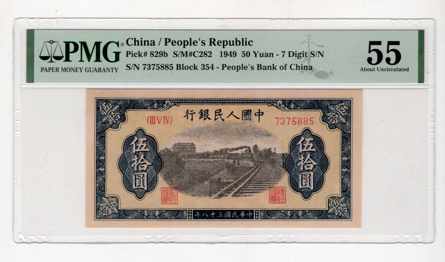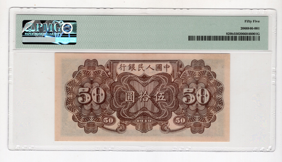一版50元铁路 PMG55分,售3400元