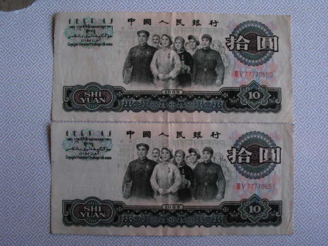 直板原票大团结顺子头两连号,售价300元,单张120元,一起包邮